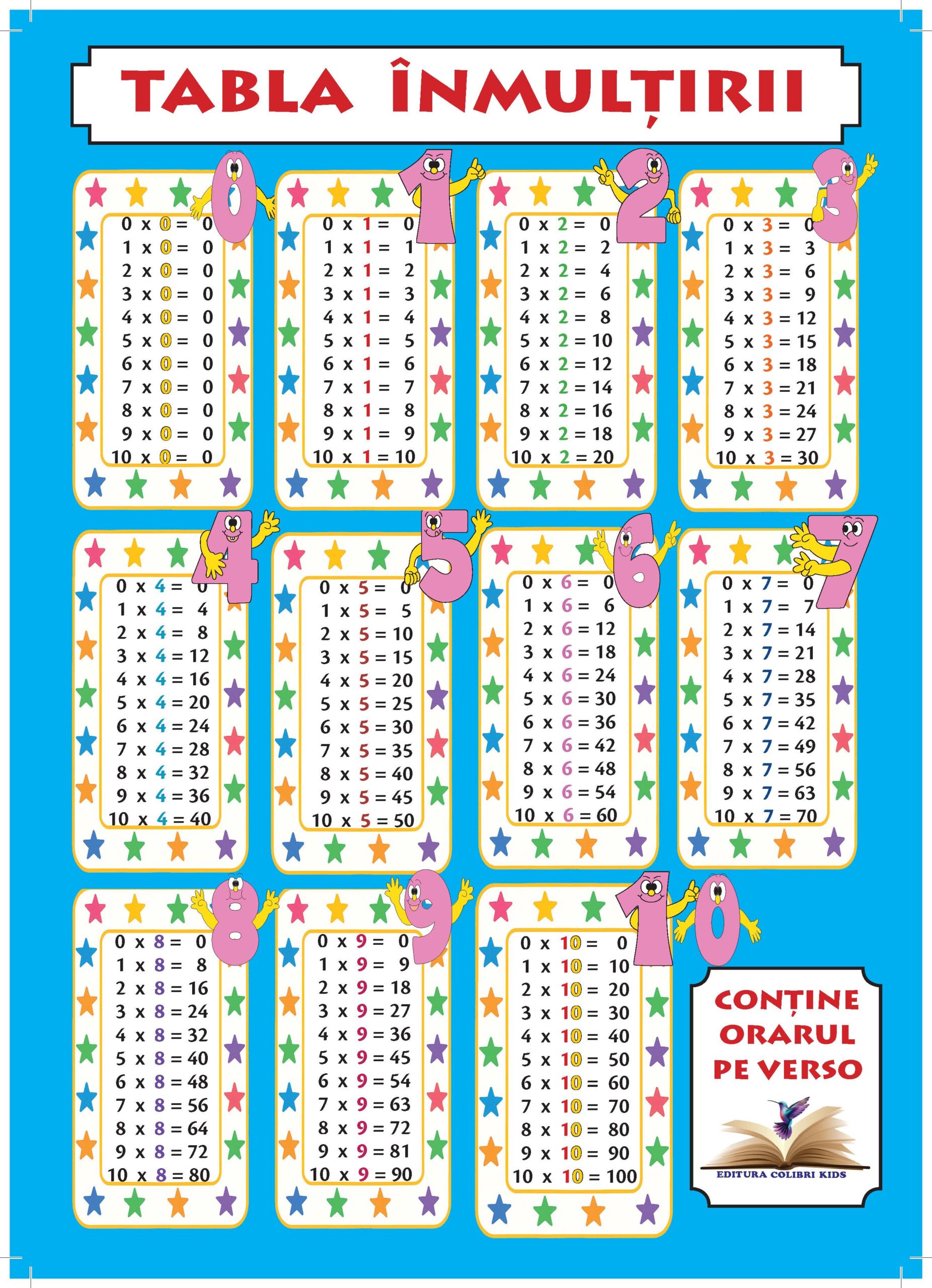 PLANȘĂ TABLA ÎNMULȚIRII / ORAR ȘCOLAR A4
